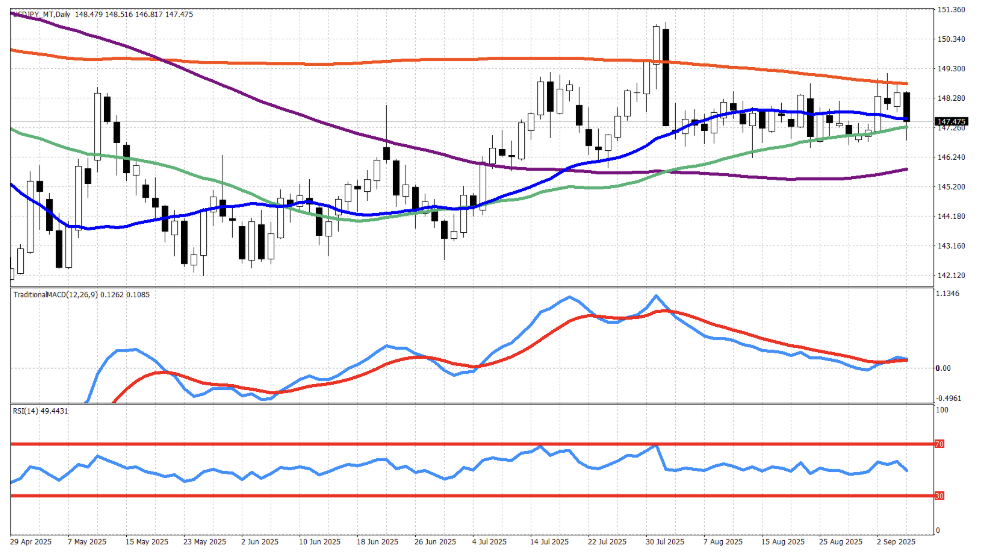 石破首相が辞任を表明し、ポスト石破の有力候補である高市氏が積極財政派であることから、円は売られやすい状況になりそうです。11日に発表される米8月CPIが強い結果となれば、大幅利下げ観測が弱まり、大きく上昇することになるかもしれません。