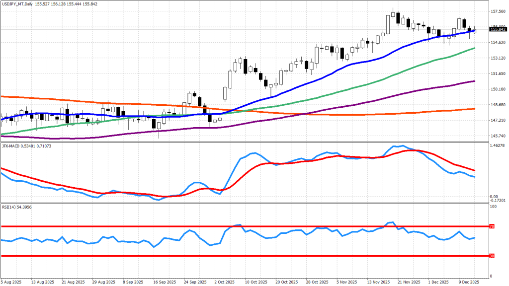 先週のドル円は155.1円付近で始まり、火曜日には157.0円付近までの上昇を見せました。しかし、その後は一転して一時154.9円付近まで下落し、155.8円付近で週を終えています。