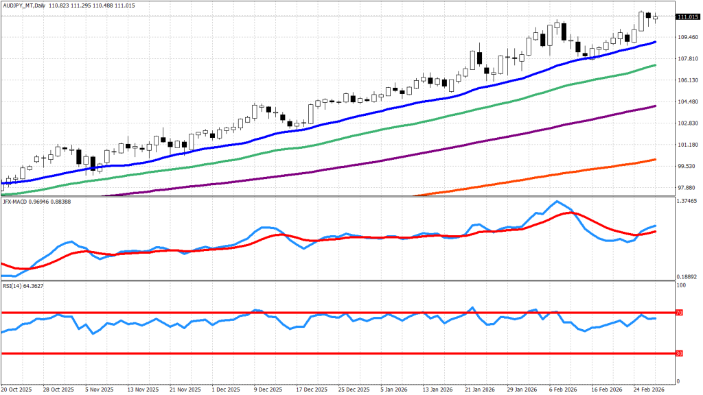 「高市首相が日銀の追加利上げに難色を示した」との報道や、次期日銀審議委員の候補にリフレ派の経済学者を指名したことで円安が進み、豪ドル円は一時1990年10月以来となる111.5円付近まで上昇しました。