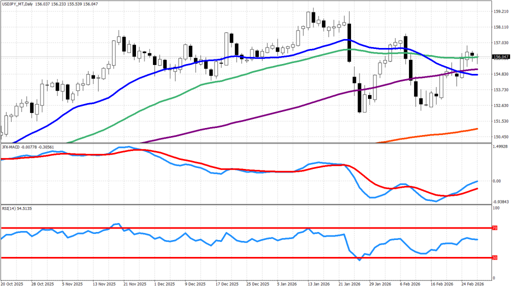 しかし、「高市首相と植田日銀総裁の会談で、首相が利上げに慎重な姿勢を示した」と報道されたことや、政府が日銀執行部の人事でリフレ派を起用したことで、追加利上げ観測が後退してドル円は大きく反発、その後は植田総裁が3月の利上げに含みを持たせたこともあって下落するなど、不安定な動きを見せました。